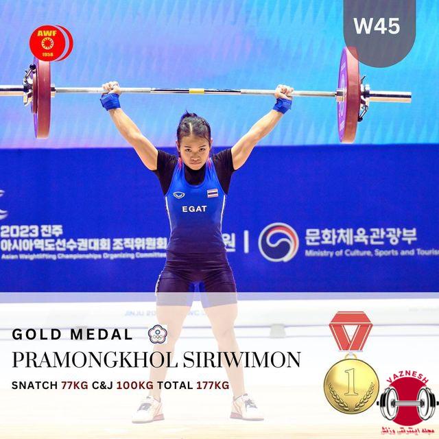 مسابقات وزنه برداری قهرمانی بزرگسالان آسیا از روز جمعه 15 اردیبهشت در شهر جنجو کره جنوبی آغاز شد و در اولین روز مسابقات در دسته 45 کیلو زنان قهرمانی آسیا نماینده تایلند به مقام نخست دست یافت. نمایندگان فیلیپین و اندونزی در رده دوم و سوم ایستادند.