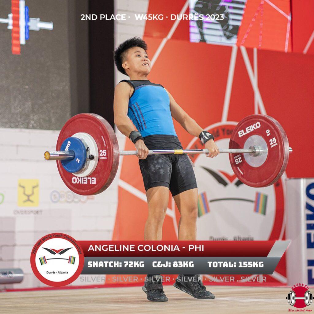 - نفر دوم آنجلینا کولونیا از فیلیپین با رکورد مجموع 155 کیلوگرم (72 + 83)