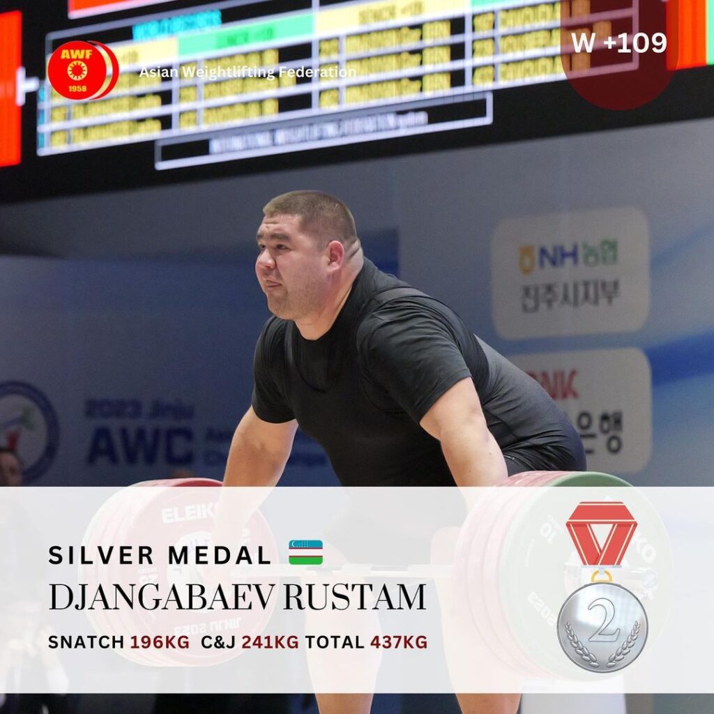 - نفره دوم –رستم جانگبائف از ازبکستان با رکورد 196کیلو یکضرب – 241 کیلو دوضرب – 437 کیلو مجموع