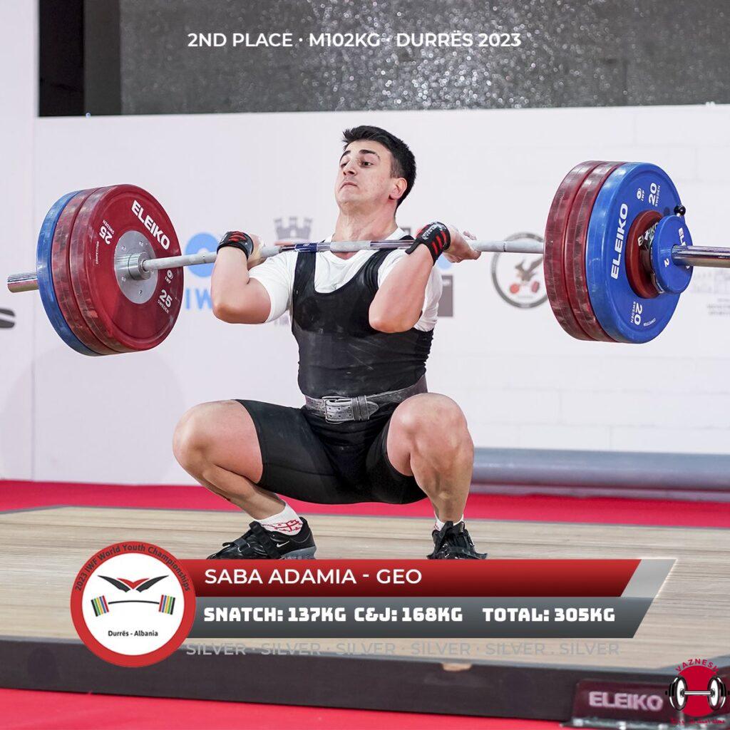 - نفر دوم صبا آدامیا از گرجستان با رکورد مجموع 305 کیلوگرم (137 + 168)