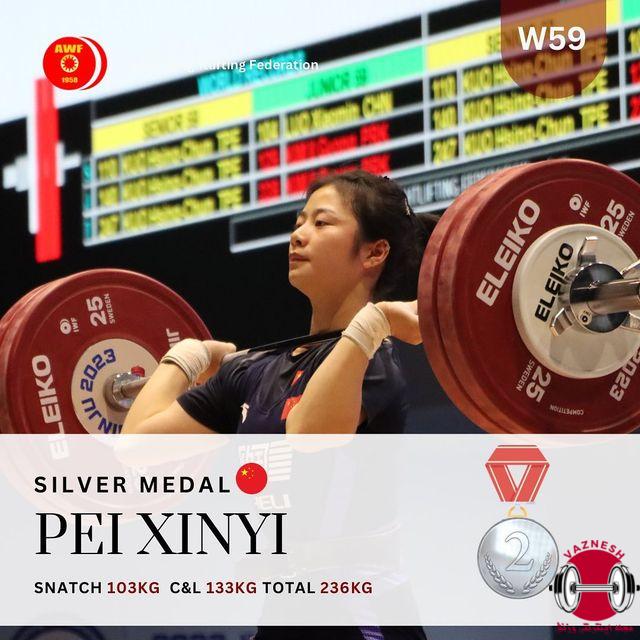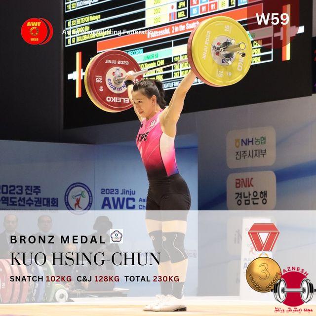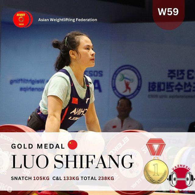 در ادامه سومین روز از مسابقات وزنه برداری قهرمانی بزرگسالان آسیا که در شهر جنجو کره جنوبی برگزار می شود و در دسته 59 کیلو زنان قهرمانی آسیا نمایندگان چین مقام اول و دوم را از آن خود کردند. نماینده چین تایپه در رده سوم ایستاد.