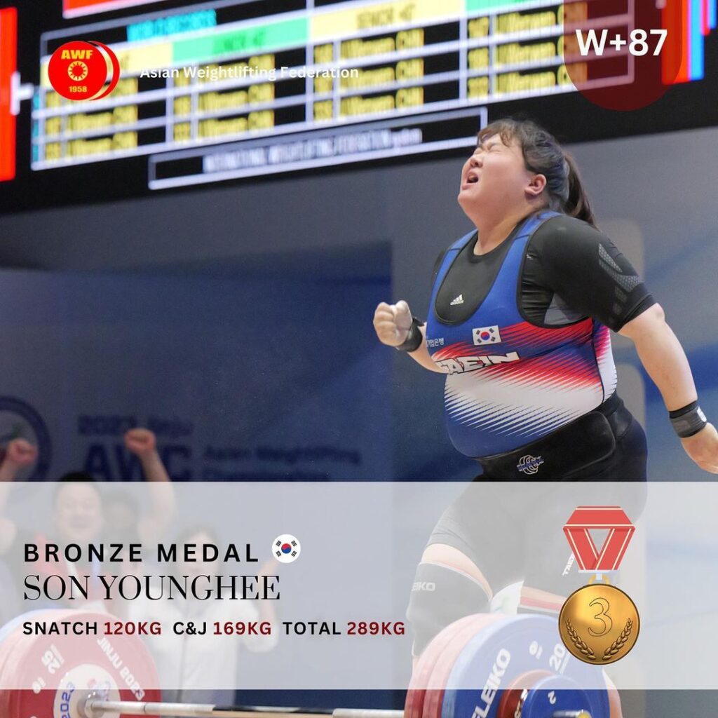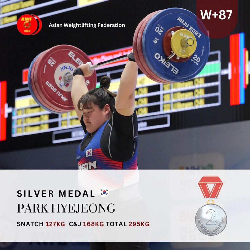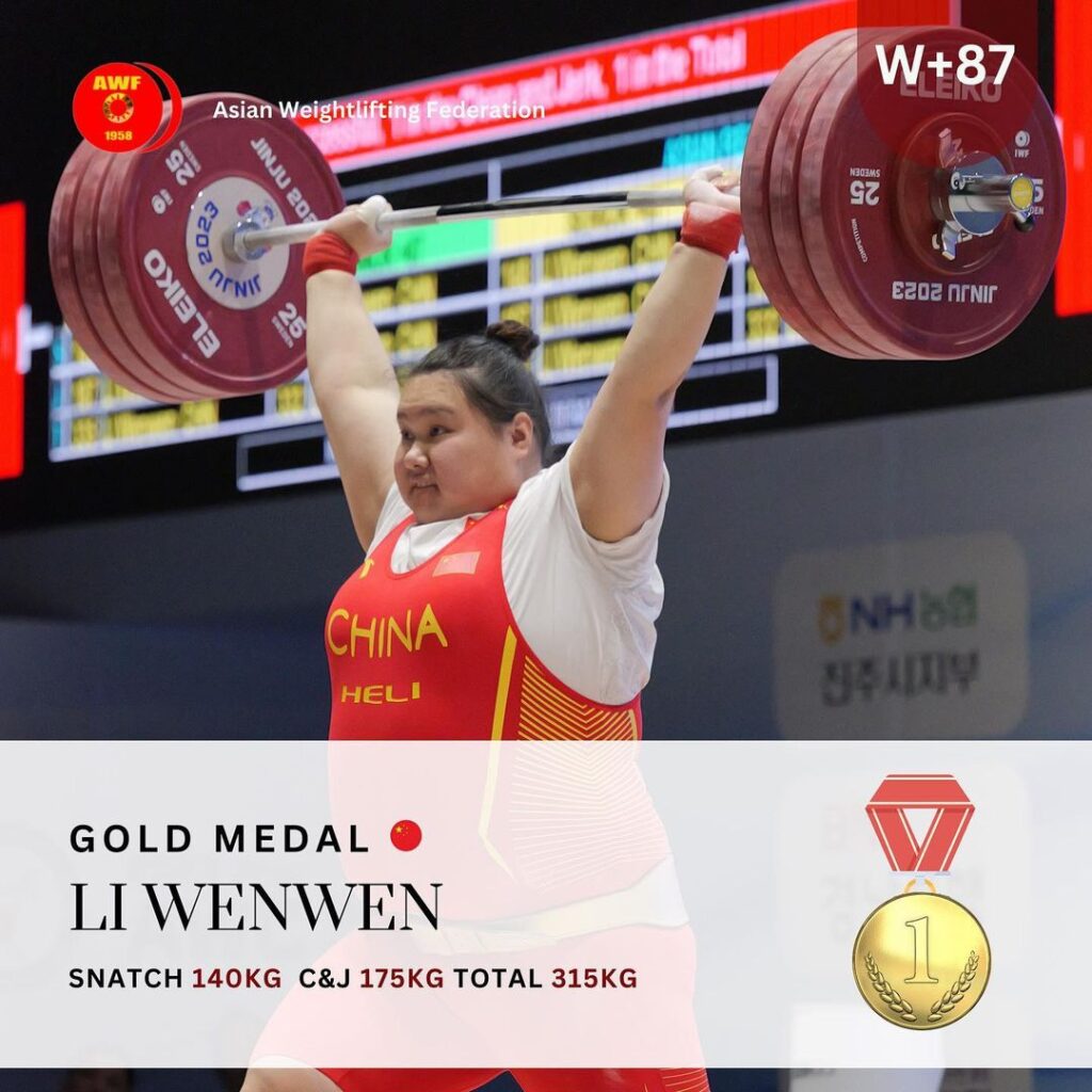 در روز پایانی مسابقات وزنه برداری قهرمانی بزرگسالان آسیا که در شهر جنجو کره جنوبی برگزار می شود و در دسته 87+ کیلو زنان قهرمانی آسیا نماینده چین در رده نخست مسابقات قرار گرفت. نمایندگان کره جنوبی دوم و سوم شدند.