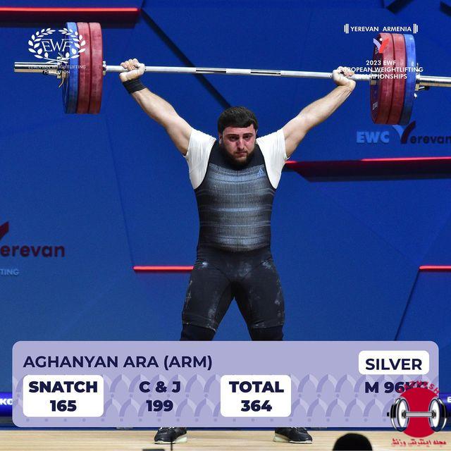• نفره دوم – آرا آقانیان از ارمنستان با رکورد 165 کیلو یکضرب – 199 کیلو دوضرب – 364 کیلو مجموع