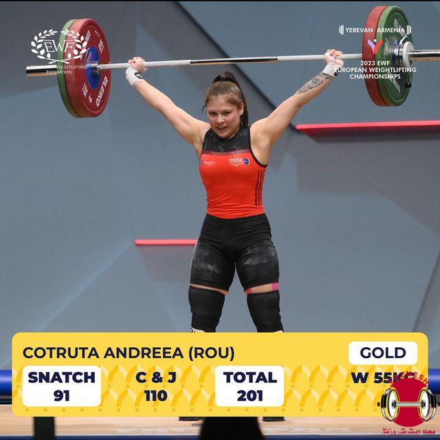 در روز دوم مسابقات وزنه برداری قهرمانی زنان اروپا 2023 که در شهر ایروان ارمنستان برگزار می شود. در دسته 55 کیلو زنان گرم آندریا کوتروتا از رومانی صاحب مدال طلا شد و نمایندگان اکراین و ارمنستان در مکان دوم و سوم قرار گرفتند.