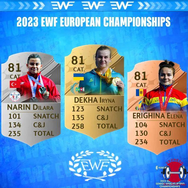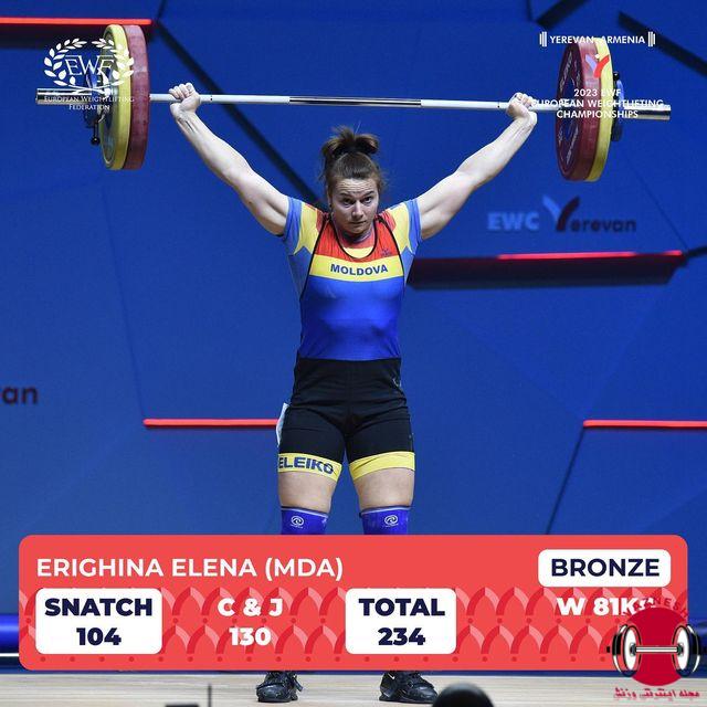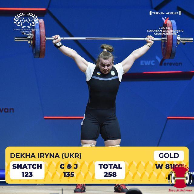 در روز چهارم مسابقات وزنه برداری قهرمانی زنان اروپا 2023 که در شهر ایروان ارمنستان برگزار می شود. در دسته 81 کیلو زنان ایرینا دخا از اکراین صاحب مدال طلا شد و نمایندگان ترکیه و مولداوی در مکان دوم و سوم قرار گرفتند.