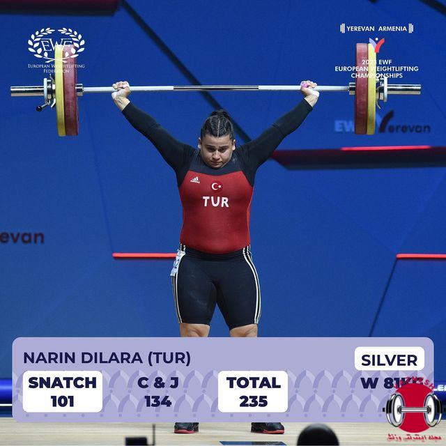 - نفره دوم – دیلارا نارین از ترکیه با رکورد 101 کیلو یکضرب – 134 کیلو دوضرب – 235 کیلو مجموع